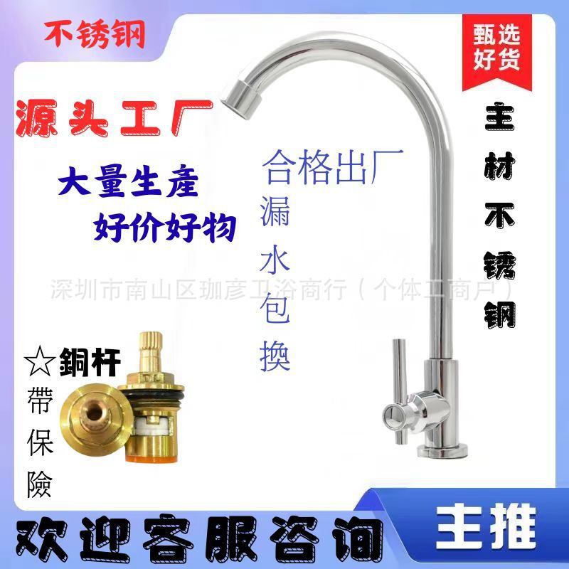 【不锈钢亮泽】跨境㕑用单冷水龙头出囗俄罗斯优质洗菜盆旋转龙头