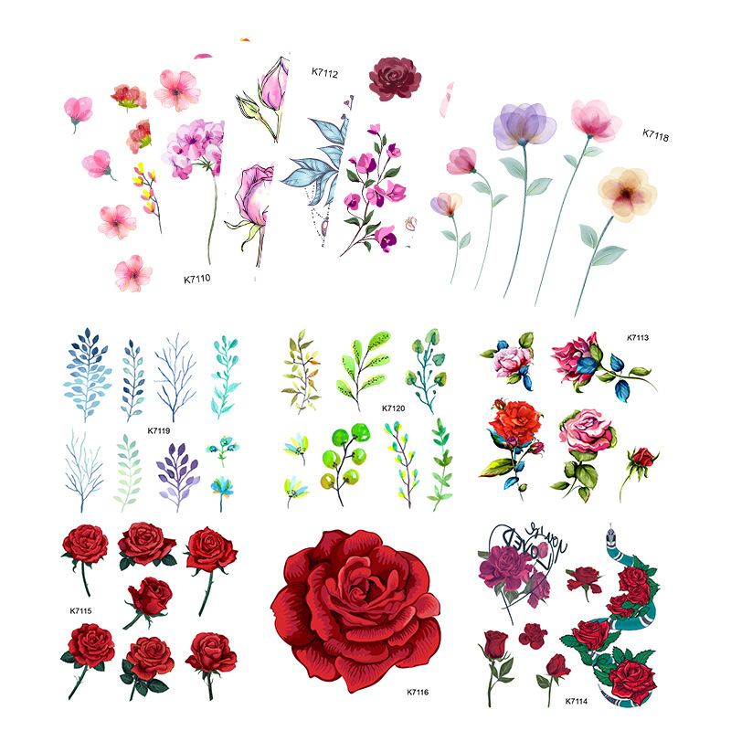 跨境热销临时纹身贴批发彩绘玫瑰花朵防水纹身贴纸一件代发易上手