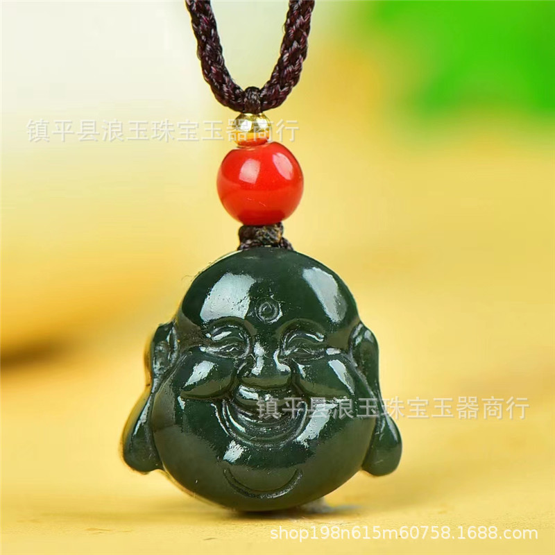 天然玉石新疆和田玉青玉佛头通孔散珠文玩手持配饰直播货源