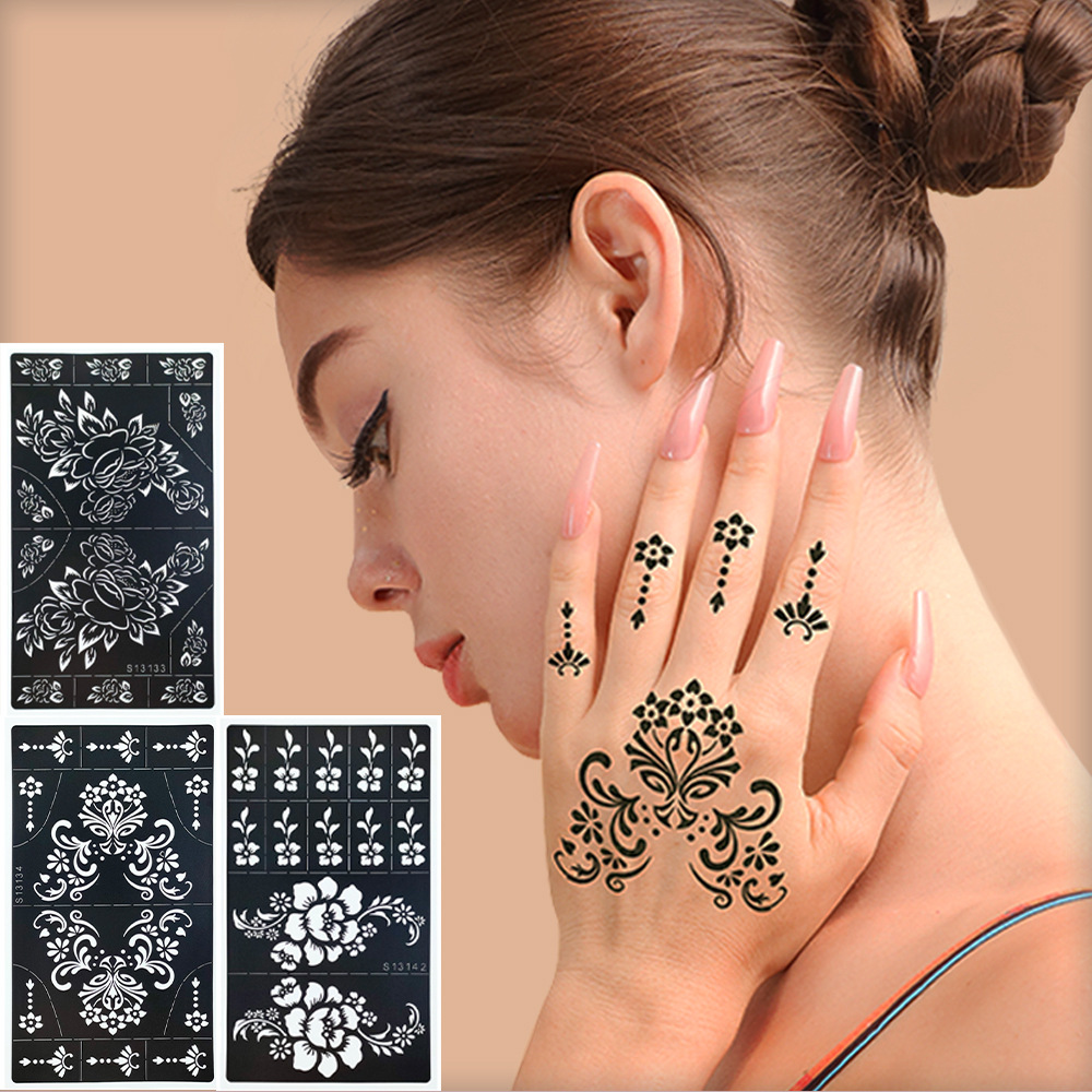 跨境海娜手指纹身模板绘画镂空精细小图案中东印度纹身贴TATTOO