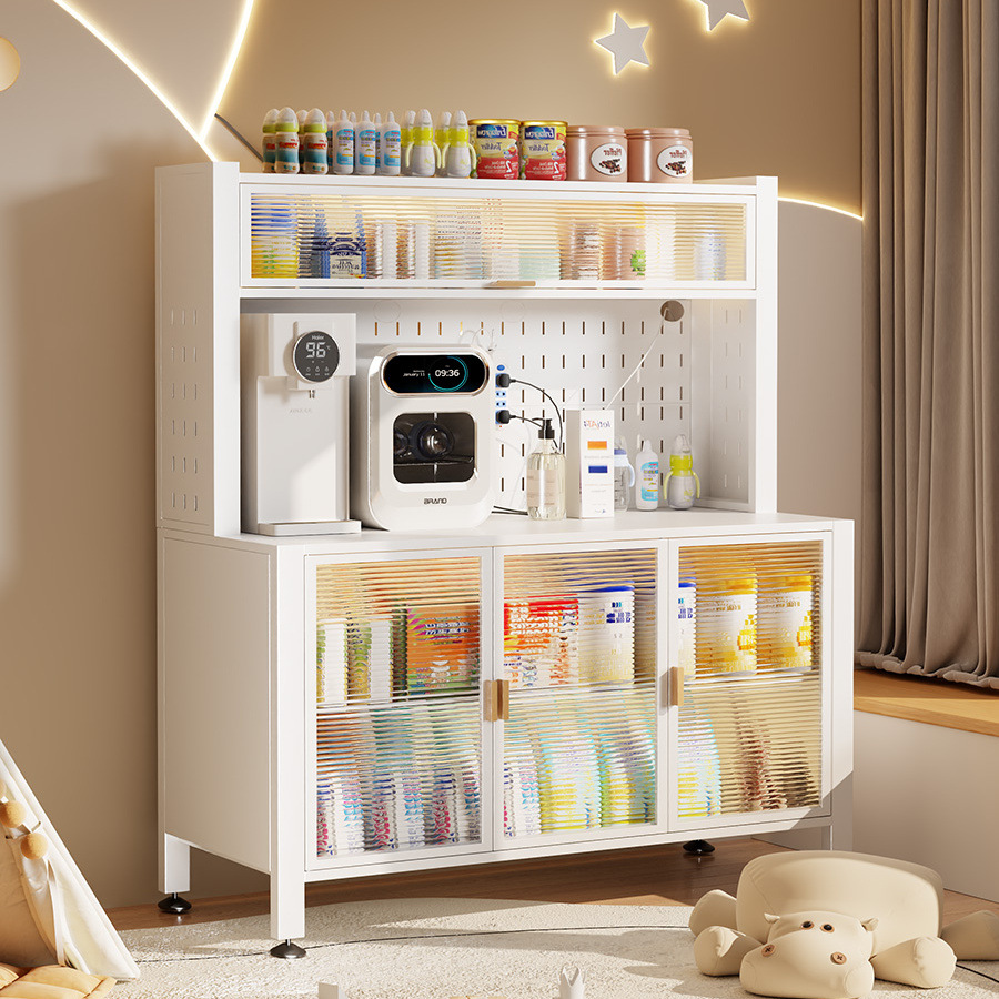 婴儿喂养台宝宝用品收纳置物柜奶瓶奶粉纸尿裤落地防尘带门储物架