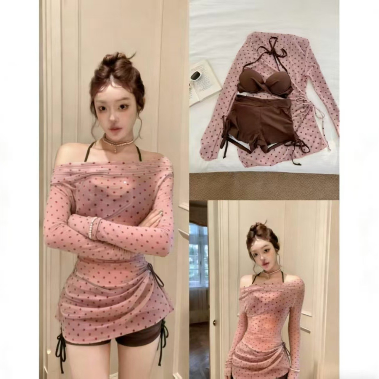 新款分体泳衣女比基尼三件套感海边度假温泉纯欲泳衣保守长袖套装