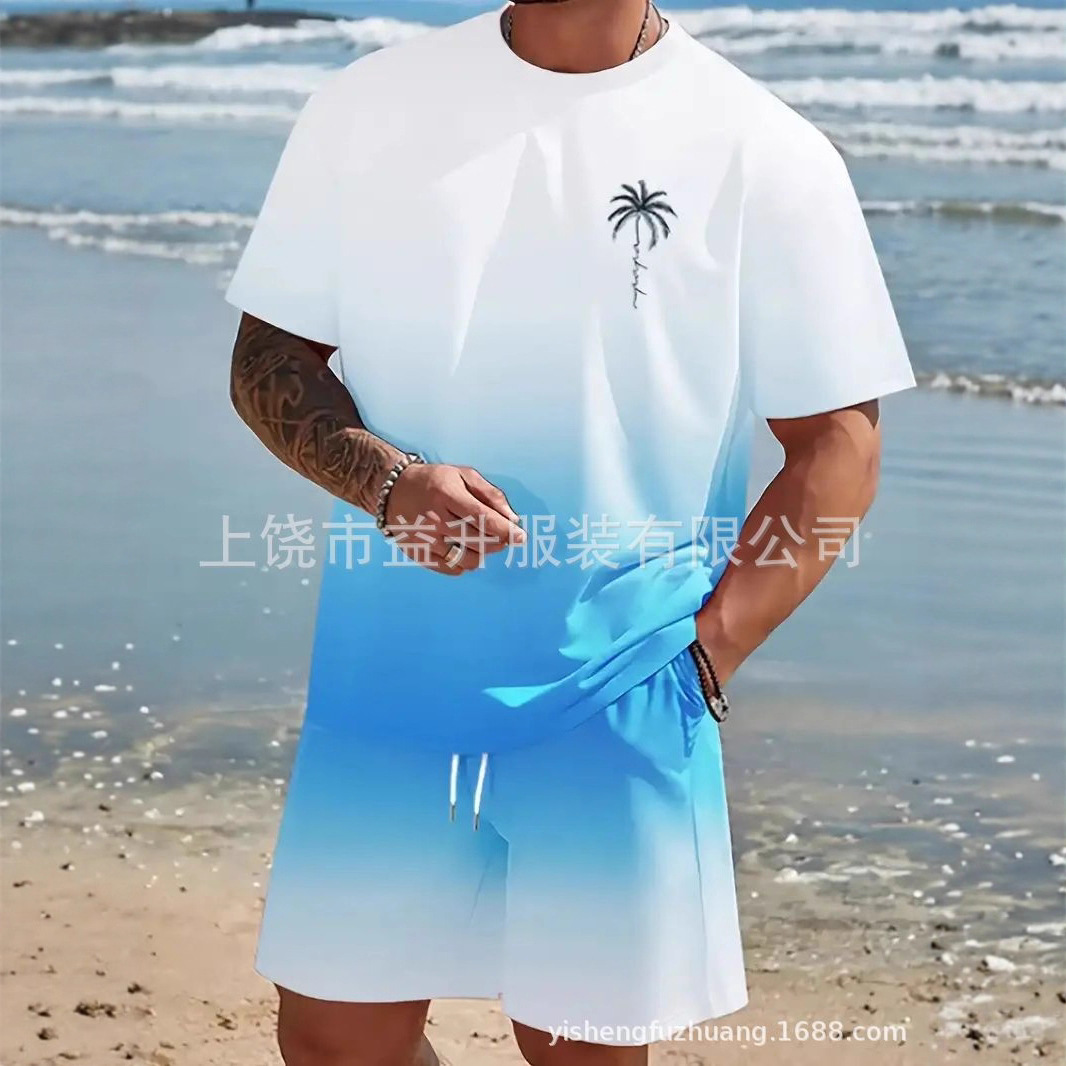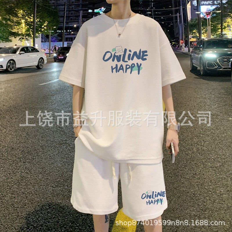 清凉夏季舒适街头男士套装 夏季个性时尚休闲短袖T恤套装