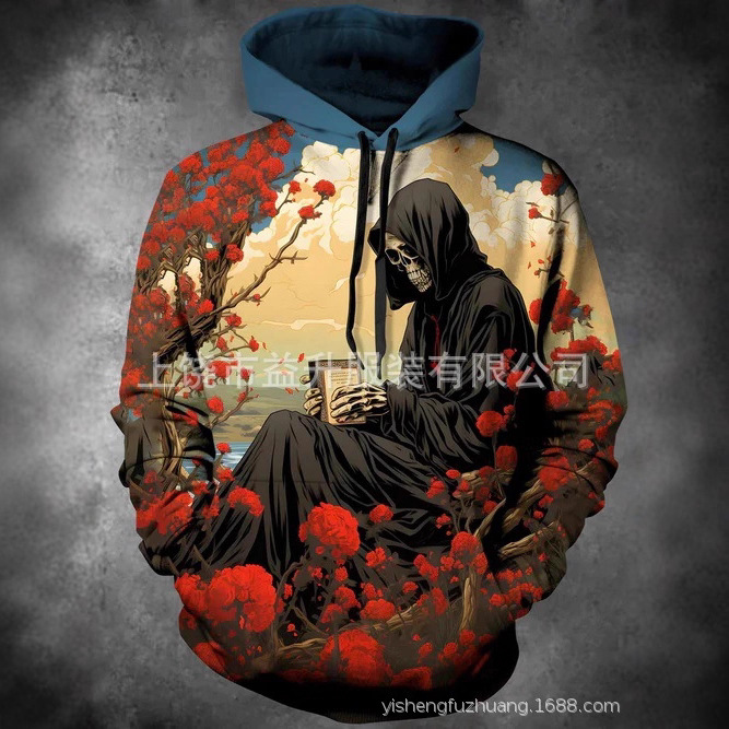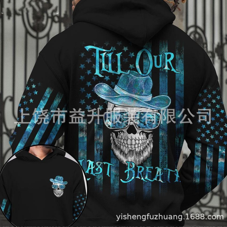 2025秋季新款骷髅3D数码印花亚马逊男士时尚休闲欧美外贸跨境卫衣
