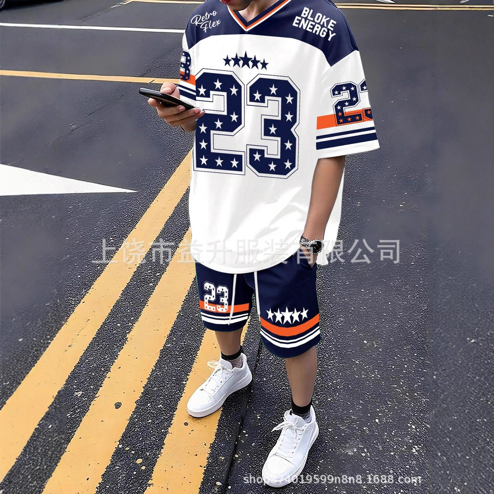 2025夏季时尚休闲个性球号短袖T恤套装 清凉夏季舒适街头套装