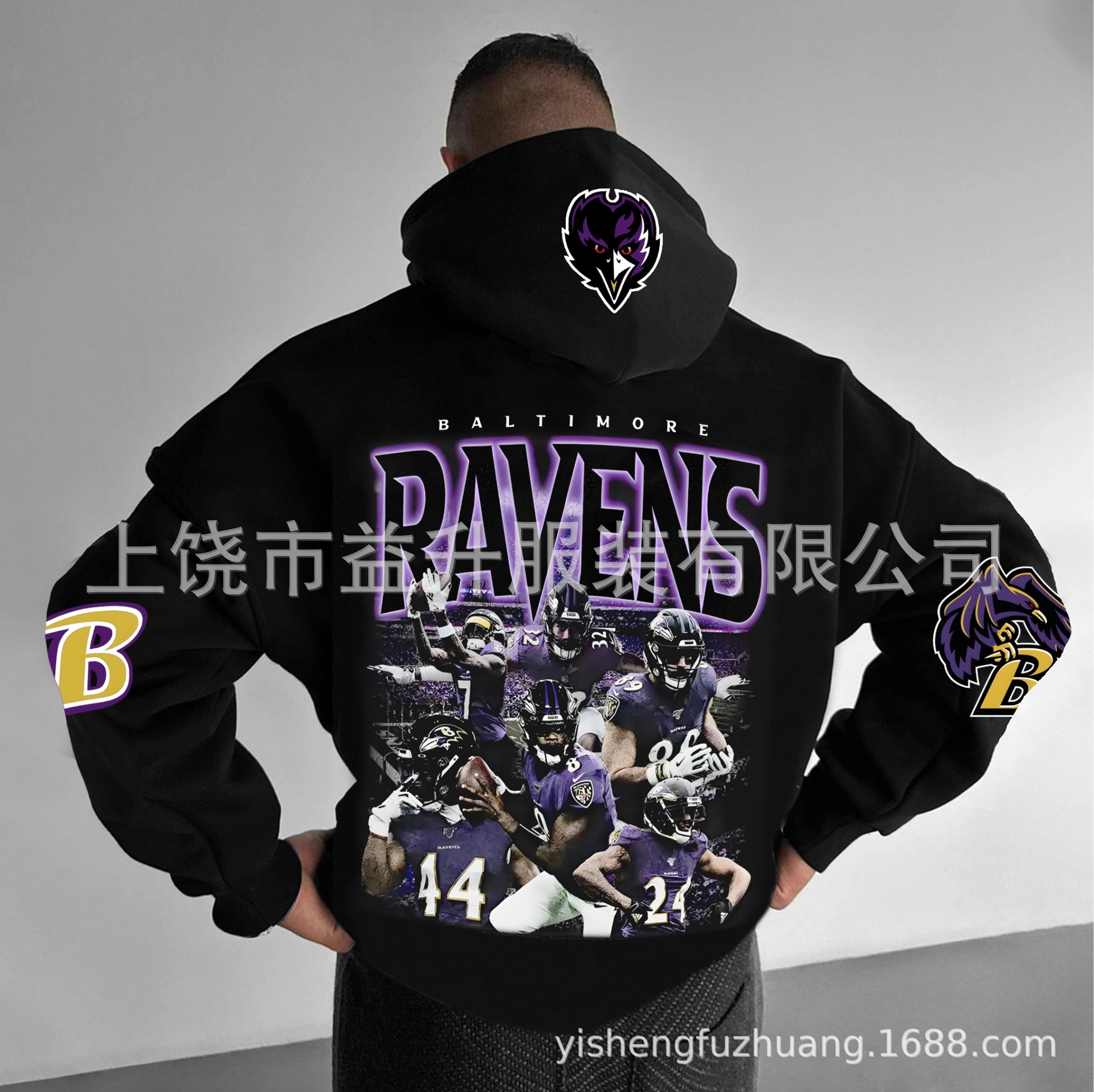 跨境美式复古潮牌高街时尚休闲人物印花 秋季新品圆领连帽卫衣