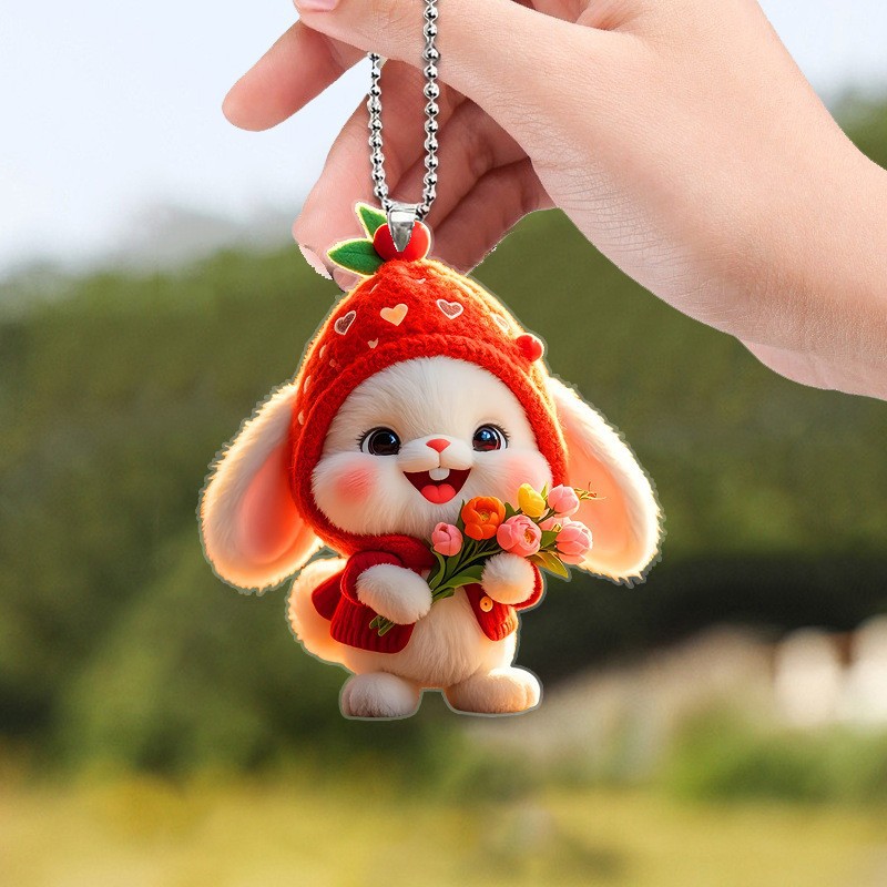 跨境亚克力小兔子钥匙扣汽车背包挂件挂饰后视镜车载卡通汽车挂饰