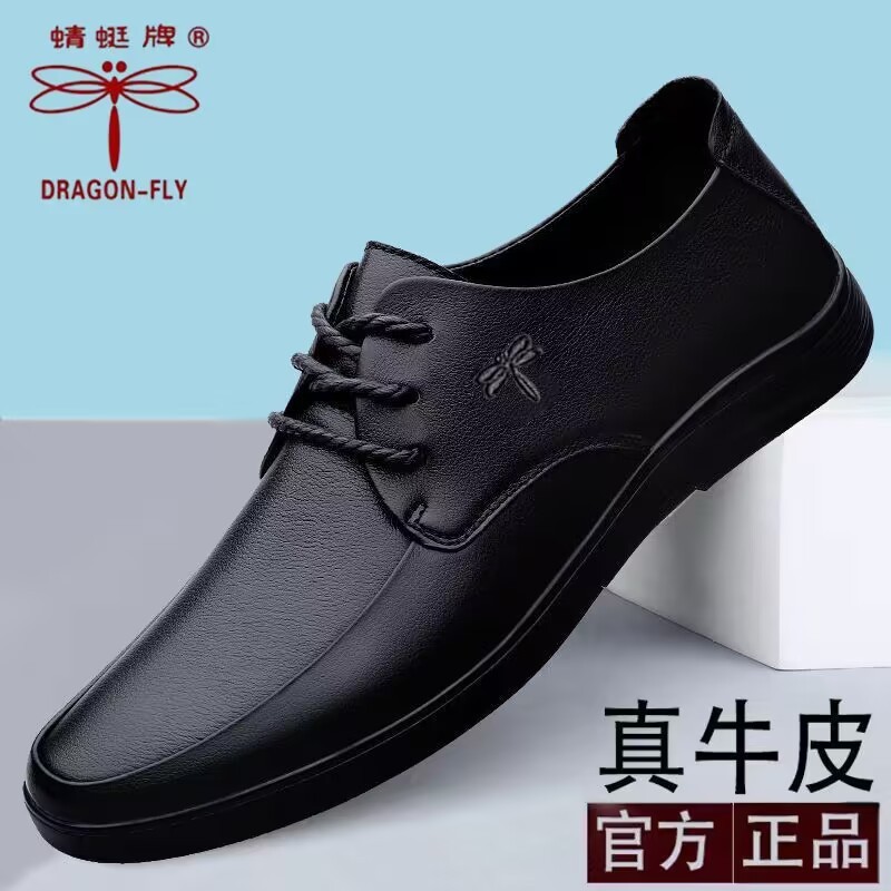 蜻蜓牌男鞋夏季男士头层牛皮商务休闲皮鞋男系带真皮软底爸爸鞋子