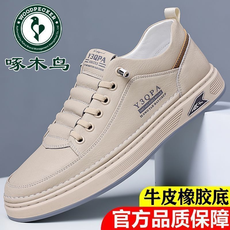啄木鸟断码真皮男鞋夏季百搭透气运动板鞋防滑软底套脚小白鞋