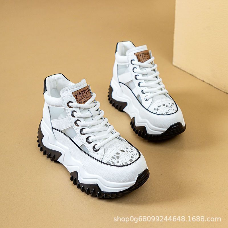 跨境网面小白鞋女2024年夏季新款厚底板鞋运动鞋百搭透气休闲网鞋
