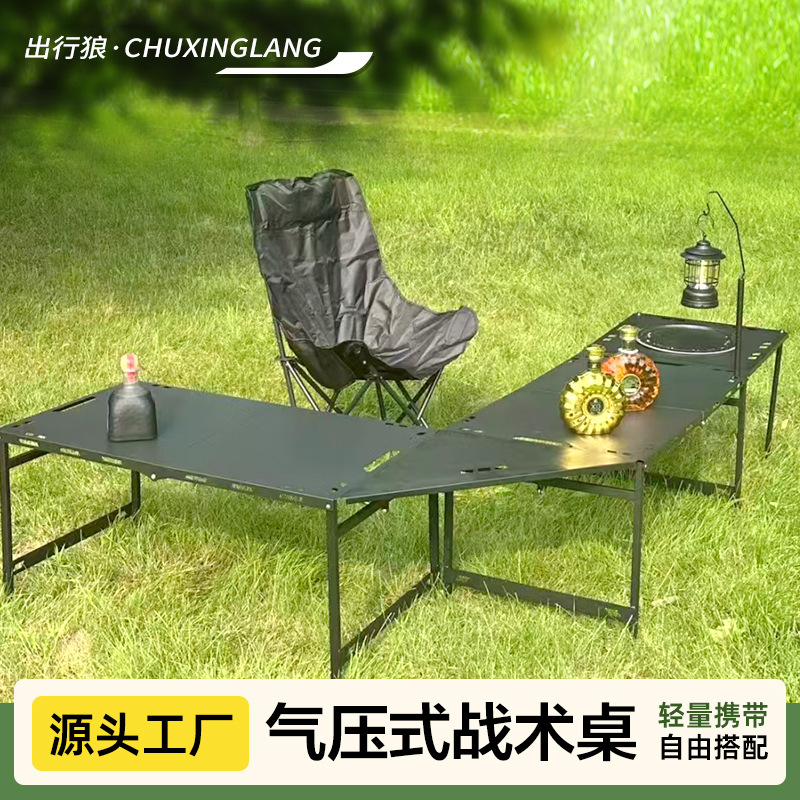 战术桌免组装便携式茶桌液压伸缩折叠路镁合金加厚桌面户外折叠桌