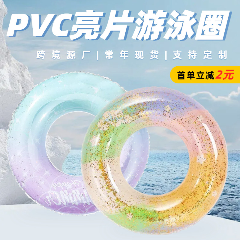跨境批发环保充气PVC亮片游泳圈ins网红户外水上加厚腋下儿童浮圈