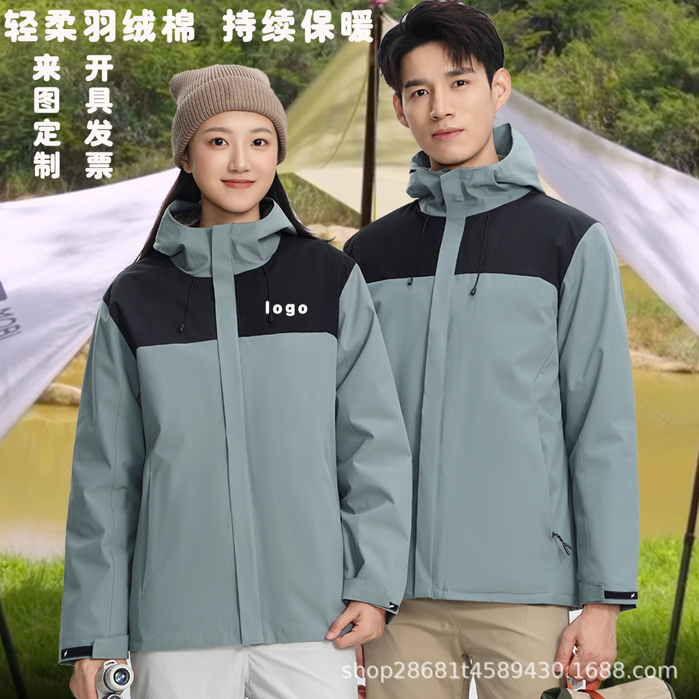 冲锋衣定制工作服印logo三合一高端防水加绒可拆卸工装外套刺绣字