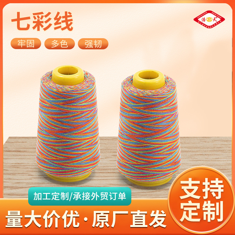 厂家直销彩色涤纶缝纫线 渐变五彩彩虹色服装线