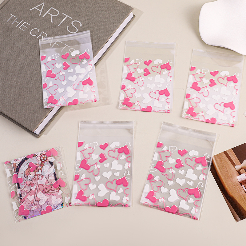 心形opp印花包装袋卡片分装袋照片自粘袋拍立得爱心打包袋自封口
