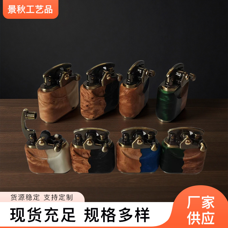 煤油打火机 复古木头双拼小摇臂手工木质防风男士火机批发 现货