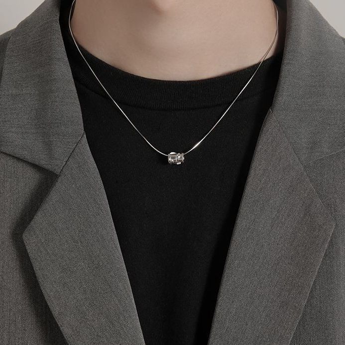 项链男款潮流蛇骨链高级感小众百搭镶钻吊坠学生锁骨链日韩毛衣链
