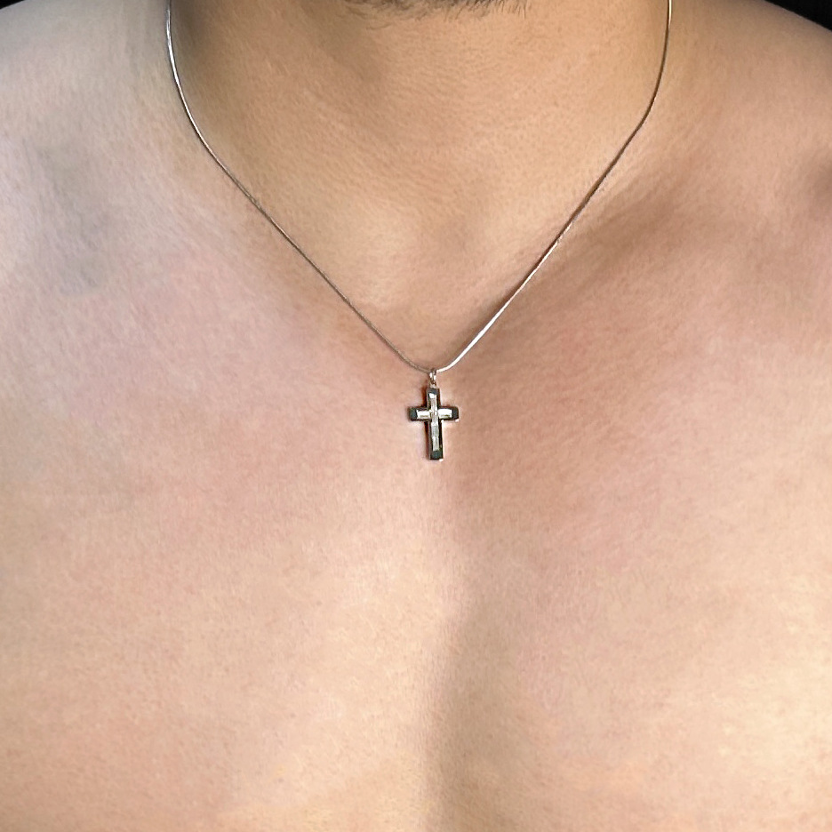 十字架项链男款潮蛇骨链百搭嘻哈男士毛衣锁骨链镶钻吊坠ins配饰