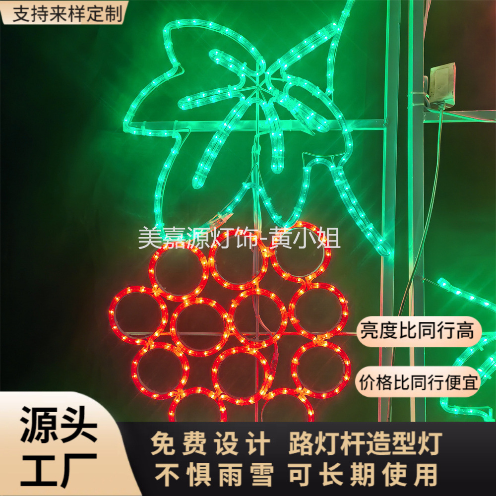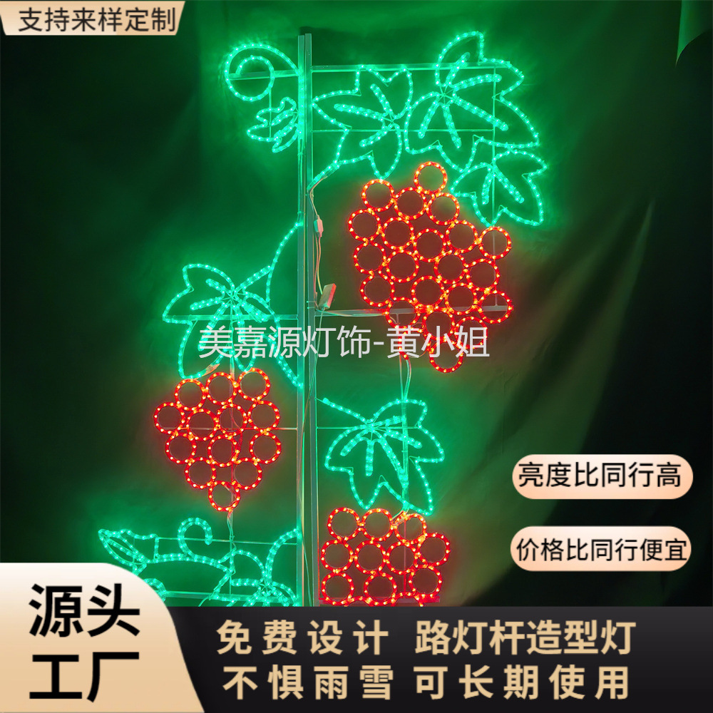 2米高LED路灯杆葡萄造型灯 户外防雨耐寒耐高温树上水果挂件灯串