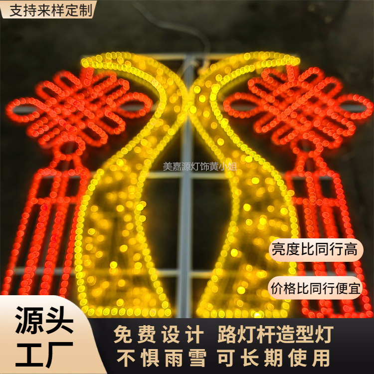 户外耐寒防暴雨LED过街灯 2026春节路灯杆上LED中国结造型跨街灯