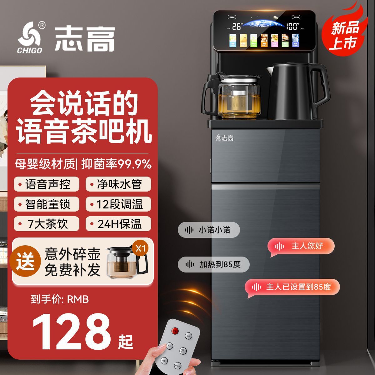 志高饮水机茶吧机家用智能语音遥控大屏双温双显下置水桶2025新款