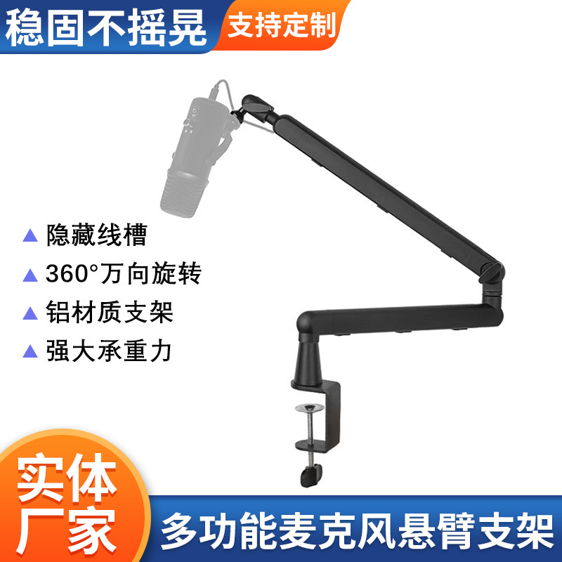 黑色麦克风悬臂支架高端桌面直播防抖手机平板低位万向多功能支架