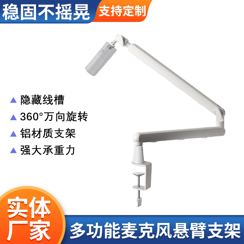高端麦克风悬臂支架桌面直播防抖手机平板白色低位万向多功能支架