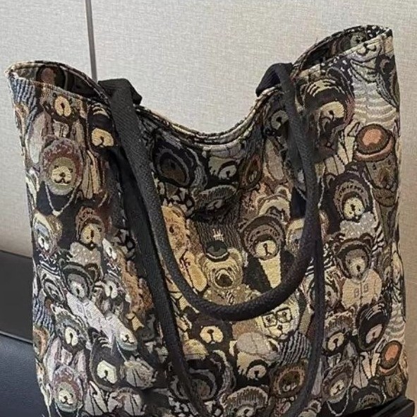 休闲大容量小熊帆布包新款2025托特包包通勤大包单肩手提包