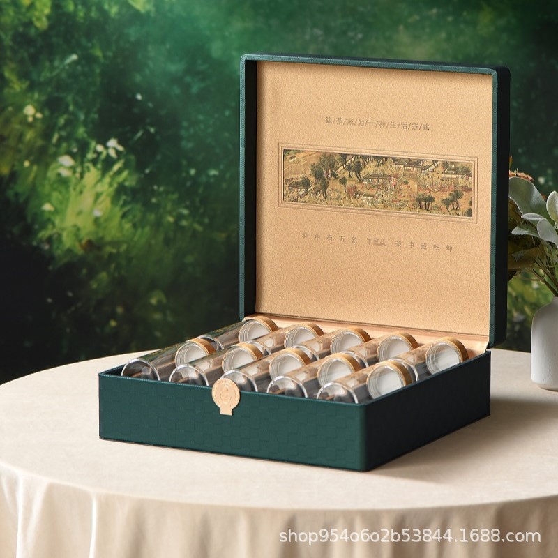 茶叶包装精美皮质礼盒太平猴魁内置10玻璃罐礼盒包装空盒