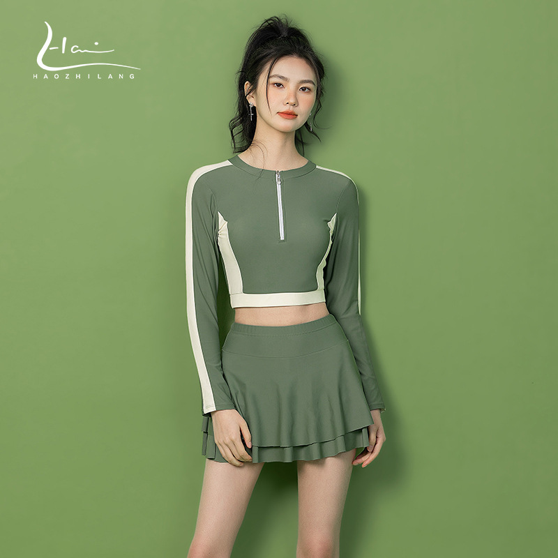 分体泳衣女夏2025新款长袖保守显瘦遮肚游泳馆专用运动平角游泳装