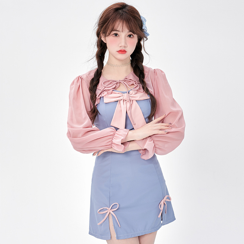 连体女新款甜美女孩日系露背防晒长袖两件套裙式少女温泉泳装