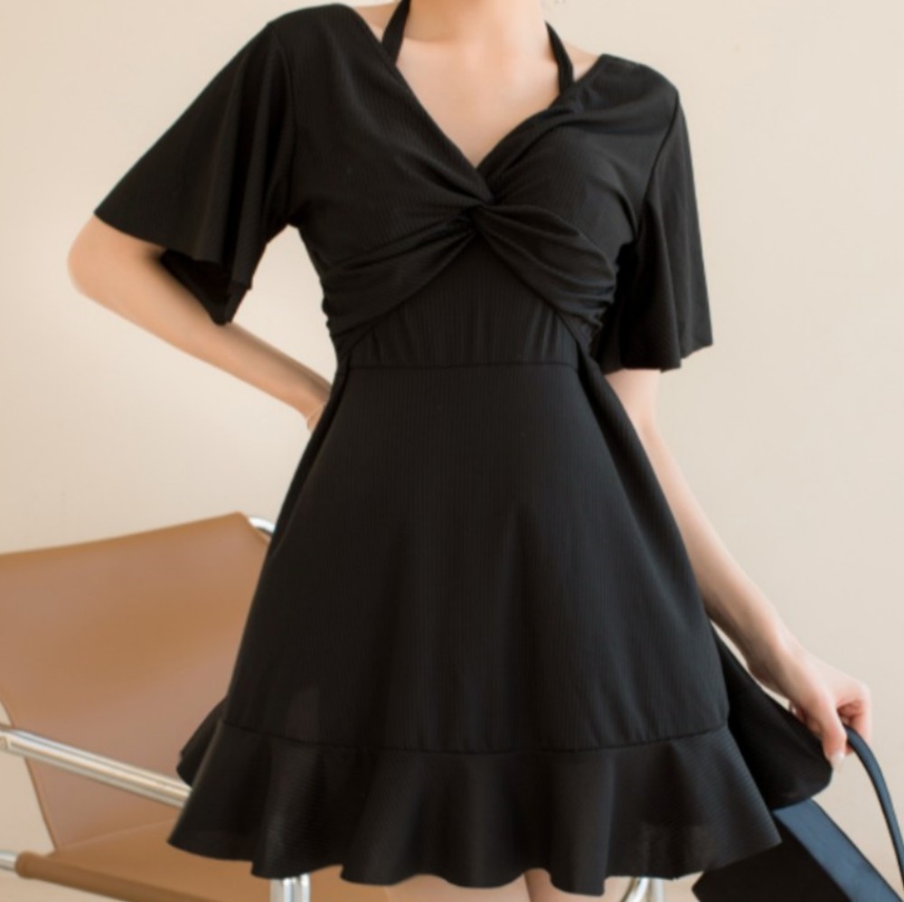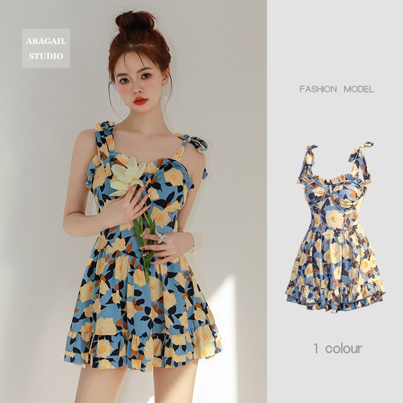 连体泳衣女夏纯欲风爆款保守裙式遮肚显瘦小胸聚拢泡温泉游泳装