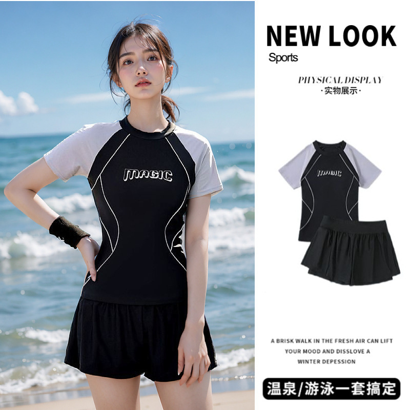 新款分体泳衣套装女修身显瘦速干防走光泳装训练学生运动风游泳装