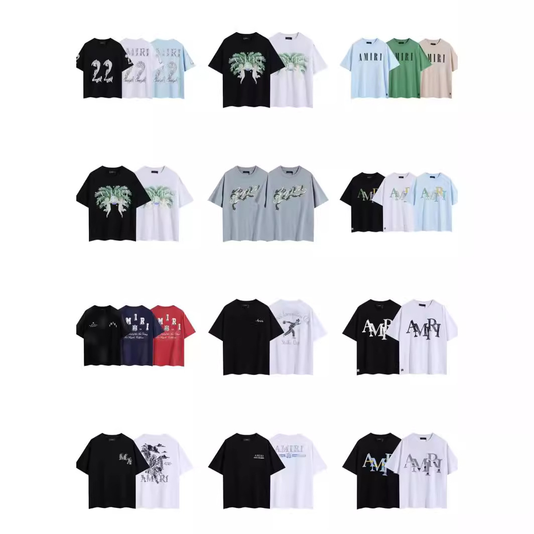 24SS跨境欧美潮牌amri微标创意字母22印花短袖t恤男女高街半袖衫