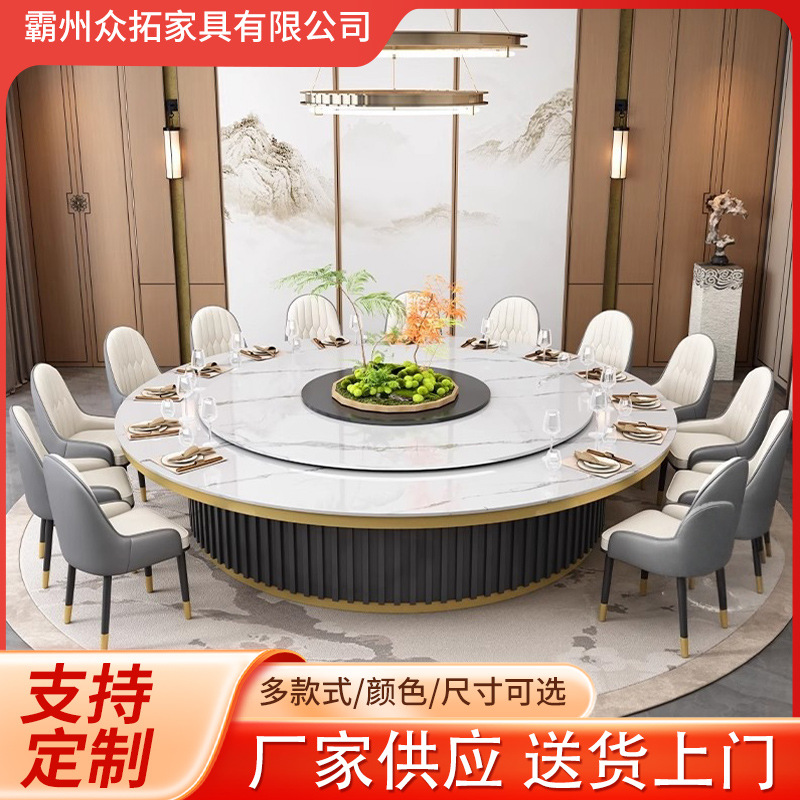 岩板餐桌现代简约酒店餐厅带转盘电动餐桌大圆桌桌椅组合家用餐桌