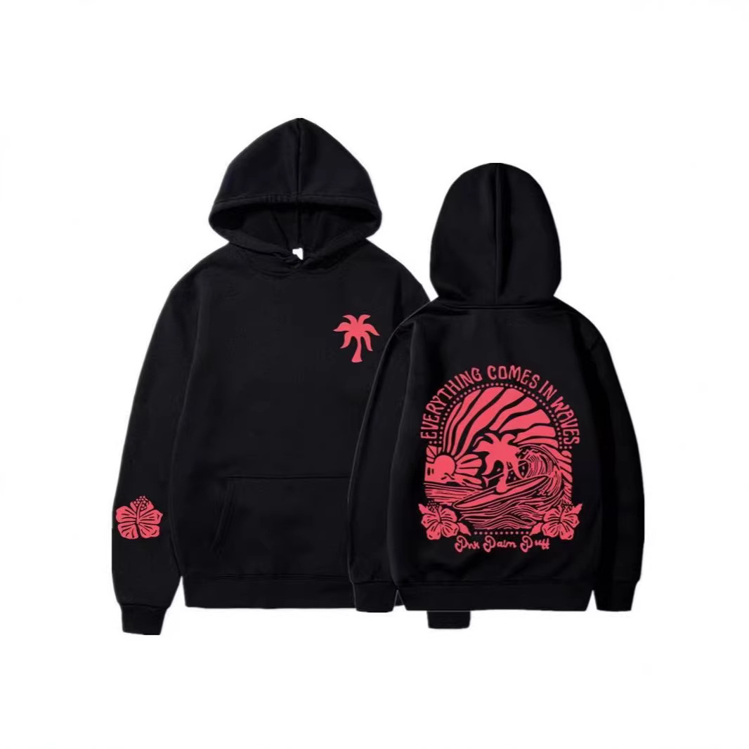 2025新版欧码女士落肩袖螺纹 Chasing Sunsets卫衣连帽衫印花外套