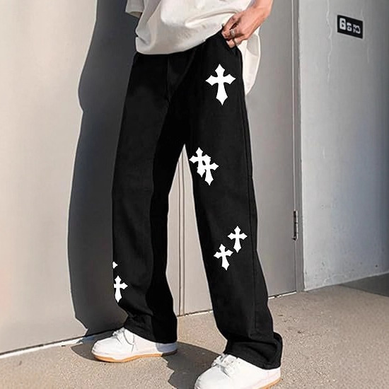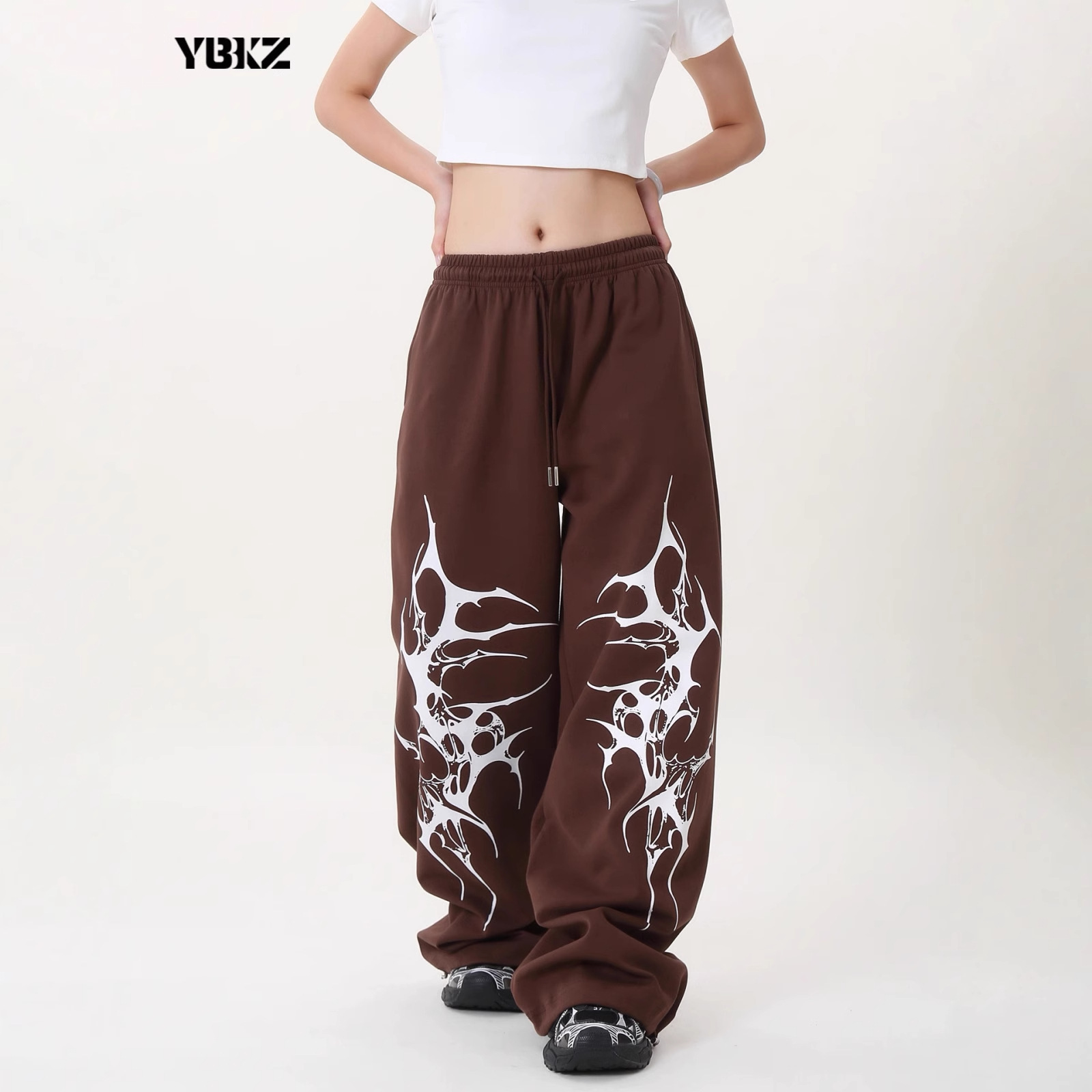 春秋新款 Y2K暗黑哥特印花宽松显瘦男女系带运动裤阔脚卫裤