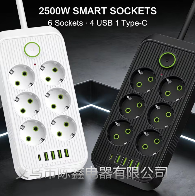 欧规专用孔智能插排 大功率USB多功能办公家用插线板带线排插F19U