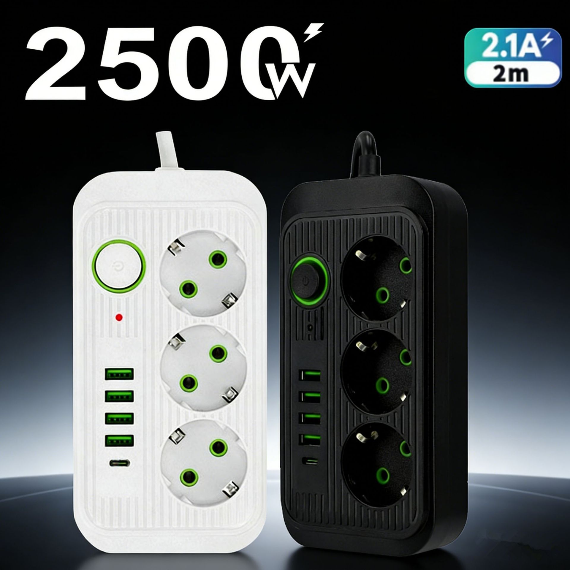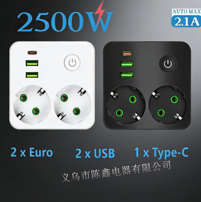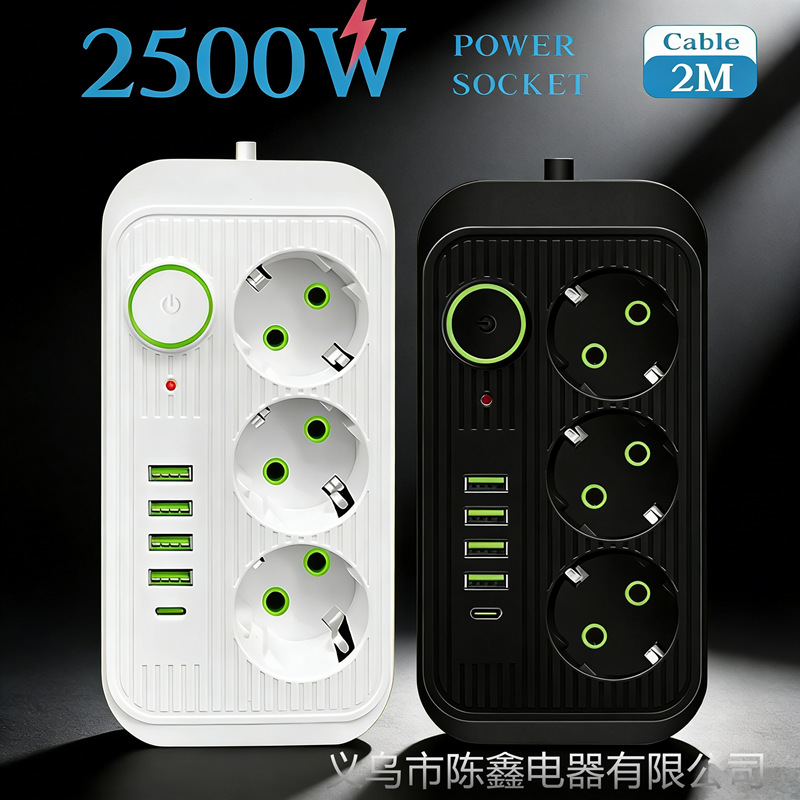 外贸俄罗斯欧洲标准3孔插座德式电源插线板带USB/Type-c欧标插排