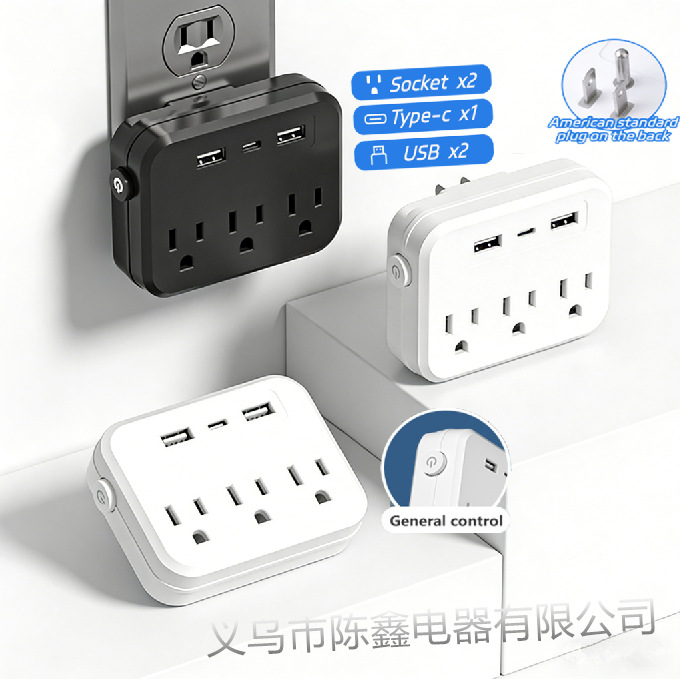 跨境TEMU爆款插座3位插孔带USB充电插排美标一转三转换器墙壁排插