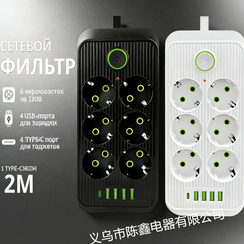 欧洲标准俄罗斯欧规电源滤波器6位多孔USB插座2米插线板扩展插排