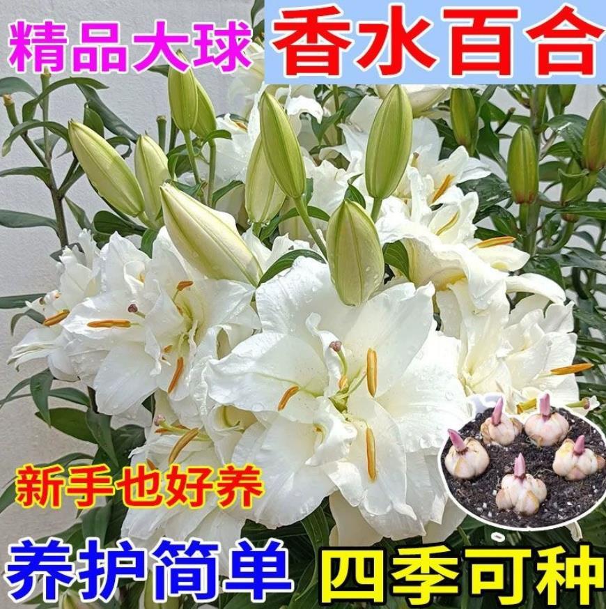 批发香水百合花种球 带芽四季易活种子籽绿植物球根花卉百合盆栽