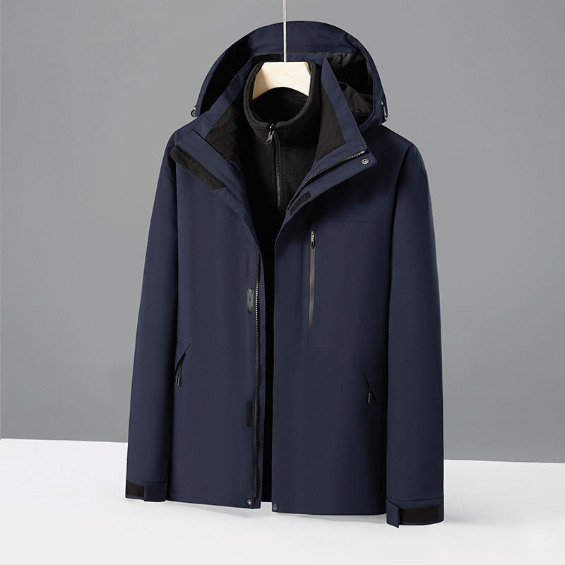 LOGO印制冬季户外冲锋衣男抓绒内胆可拆卸三合一两件套连帽外套女