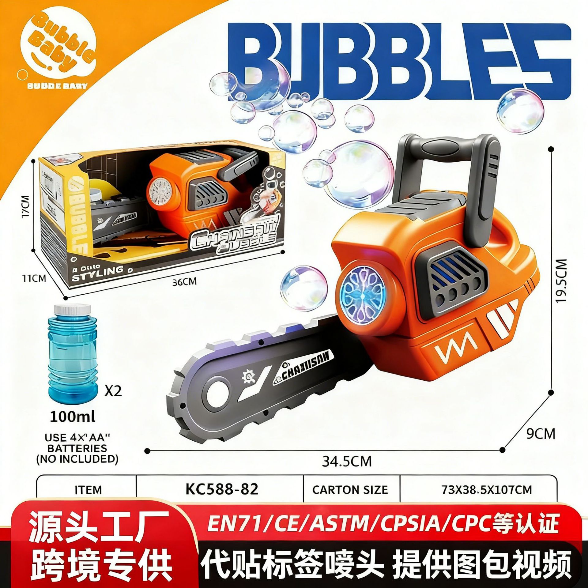 跨境新款儿童电动泡泡机全自动工具款锯子手推车花洒亲子互动玩具