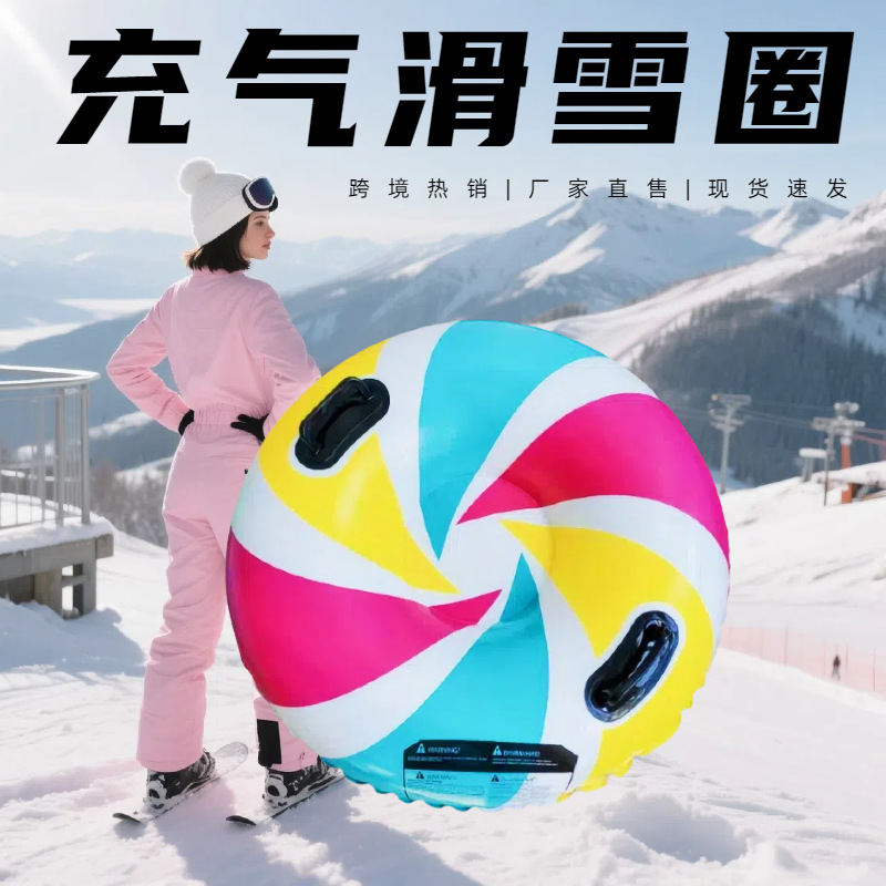 跨境厂家直售充气PVC印花滑雪圈户外防侧翻加厚雪地圈耐寒滑雪垫