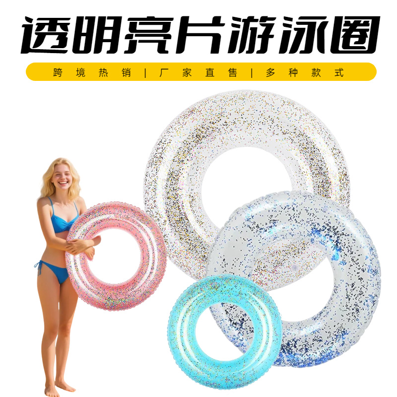 透明亮片游泳圈 现货批发ins网红泳圈 成人加厚PVC水上乐园腋下圈