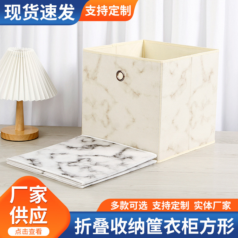 客厅玩具折叠收纳筐衣柜方形衣服置物篮北欧大理石纹布艺家用