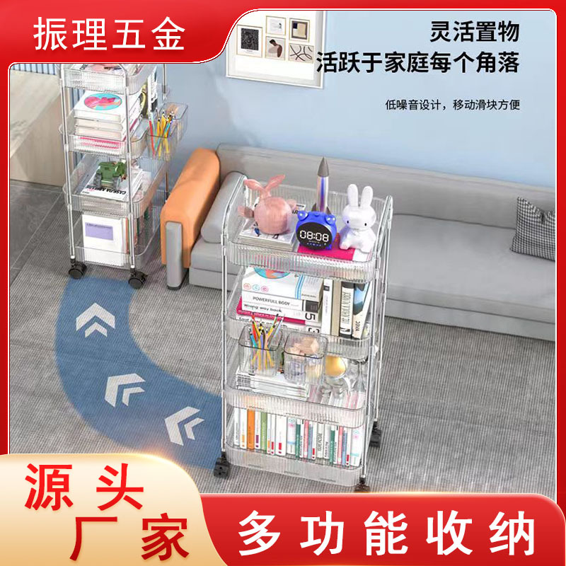 定制透明亚克力化妆品浴室移动置物架零食收纳架小推车置物架书架