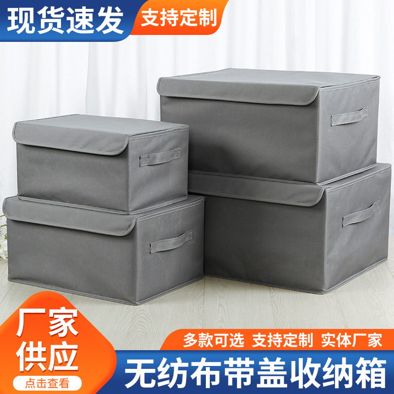 无纺布带盖收纳箱整理布艺收纳盒衣柜衣物收纳整理盒储物现代简约