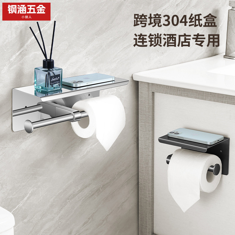 墙上304不锈钢纸巾架卷纸架手机置物架卫生间连锁酒店浴室厕纸架